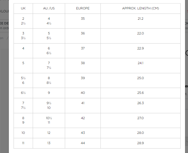 Klouds Size Guide